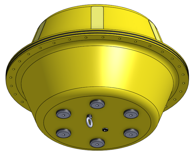 The control electronics module is modelled as a 100mm x 100mm x 20mm box mounted under the mounting plate. There is currently space for larger or multiple control modules if necessary. Given that the buoy will need to contain a sufficient amount of air to float, space constraints are not anticipated to be an issue.
