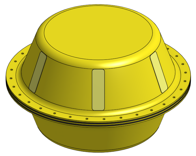 In the hull perimeter seal, the gasket will resist compression and cause the polycarbonate to bow outwards between the perimeter bolts. With thin polycarbonate and wide bolt spacing, this may cause leaks to occur at peak of the bowing. The bolt spacing will likely need to be adjusted to ensure sufficient stiffness in the perimeter seal. If necessary, a set of polycarbonate rings with the same shape as the perimeter gasket could be cut and placed on the outside of the hull to provide additional stiffness in the perimeter seal.
